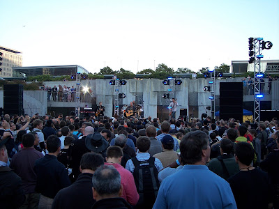 After lunch I headed upstairs to the Presidio for Mastering iPhone View Controllers, given by the same guys how already did the “Understanding” sessions on Tuesday afternoon. They did a great job again, drilling deeper into the stuff you need to know to truly get the most out of them. They wrote the classes, so they really know what they were talking about. After that I actually wanted to go to Polishing Your Cocoa Application, but on the way I saw Introduction to Kerberos. I had already been to a lot of sessions about UI design and Cocoa best practices, so I thought I’d get more out of the Kerberos session. And I definitely learned a lot because the session was a very in-depth explanation of how it works and how it’s used on OS X. The final afternoon session before the Bash was iPhone Device APIs: Location, Accelerometer and Camera in the Presidio. A truly great session, especially because of the extensive Q&A after the session. After the guy said “OK, one more question”, they actually still answered about 15 more. Very, very informative.By that time, everyone was looking forward to some free (as in “free beer”) beer at the WWDC Bash at Yerba Buena Gardens right next to the Moscone Center. The food was great, including sushi, ribs and dim sum. I met a couple of people again, so it was a lot of fun. A true highlight was the band they got to play at the bash: The Barenaked Ladies. Their songs are really funny and they are absolute Apple fanboys, which I didn’t know. So they were joking and told anecdotes all night and the atmosphere was great. Lots of fun all around.