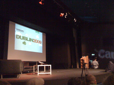 the registration consisted of being pushed toward two registration tables, being handed an empty badge and the moving across the room - through the crowd - to get a pen and write your name and company on your own badge. Annoying. Then: No free coffee. No free water. 2 euros for a small cup of coffee at a very crowded bar. What about WiFi? They used a home router which you could never get on and if you every managed to get on it, it was so slow that sucking a steak in through a straw would seen easy, fast and enjoyable. So I was basically offline all day at a conference called “The Future of Web Apps”. Not good. Oh, and no swag either!